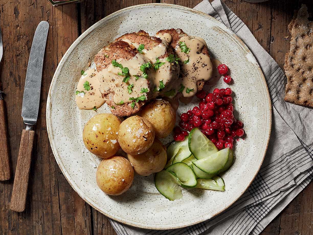 Köttfärslimpa med gräddsås