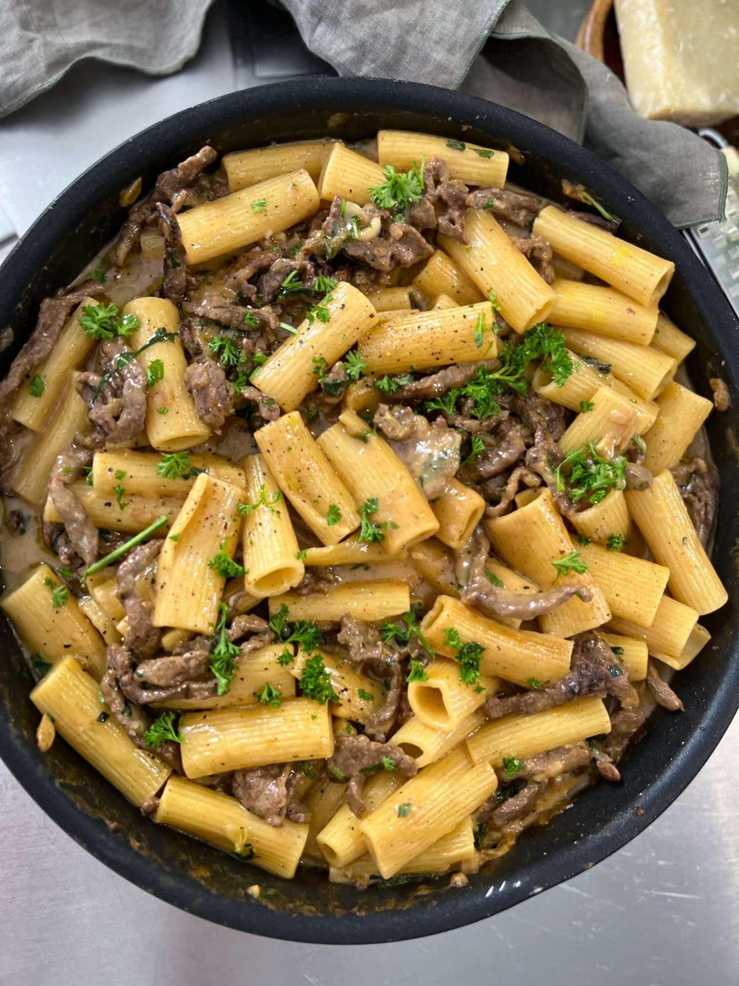 En snabb och krämig lövbiffspasta perfekt till en söndagkväll eller lunchmatlådan